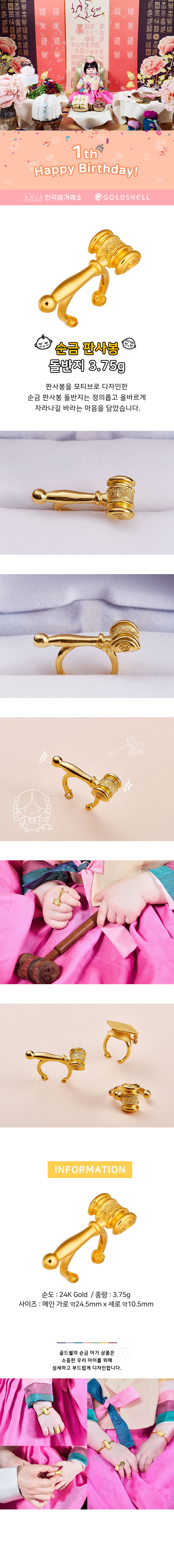 순금 판사봉 돌반지 3.75g
